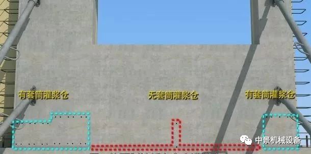 當存在無灌漿套筒的灌漿倉時,首先灌注無套筒的灌漿倉,有套筒的灌漿倉注漿時選擇靠近無套筒的灌漿倉一側(cè)的注漿孔。如果離無套筒的灌漿倉*近的注漿孔不便封堵。則可向相反方向順延一個。